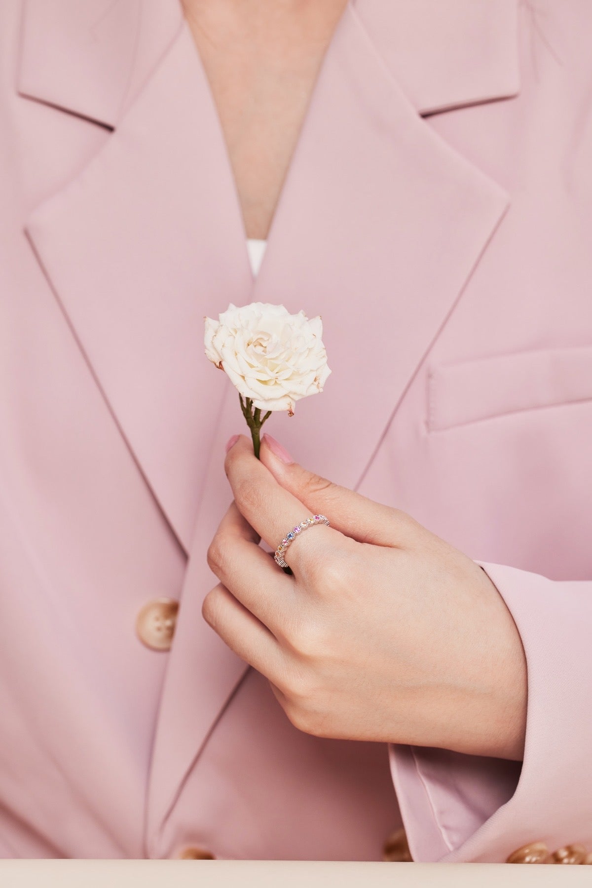 Questo anello viene realizzato interamente in argento 925 con zirconi.
