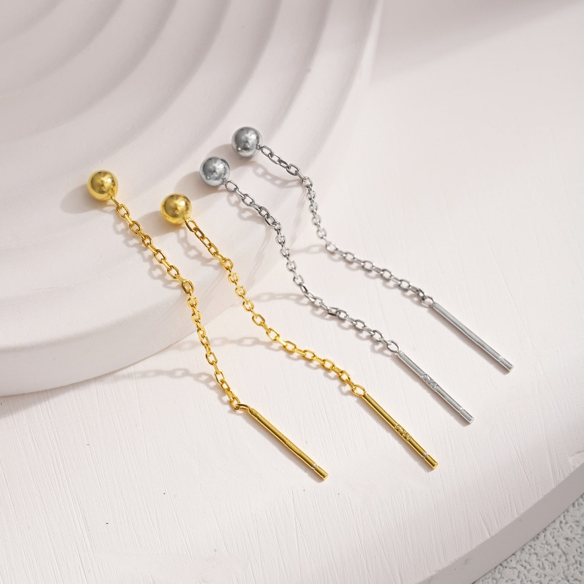Questo orecchino è caratterizzato da una forma a sfera è una catenina, super versatile, può essere utilizzato in moltissimi modi. Molto elegante per ogni occasione